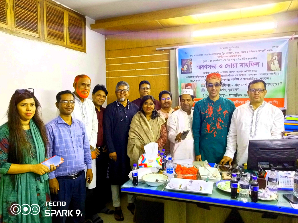গভীর শ্রদ্ধা ও ভালোবাসায় বাংলার শেষ স্বাধীন নবাব সিরাজউদ্দৌলার প্রিয় নানাজান, বাংলা, বিহার ও উড়িষ্যার দেশপ্রেমী নবাব “বঙ্গবীর আলিবর্দী খান” (জন্ম :- ১৯ সেপ্টেম্বর ১৬৭৪ ইং ; মৃত্যু :- ১০ এপ্রিল ১৭৫৬ ইং)। বাংলার এই সফল নবাবের ভালোবাসায় স্মরণসভা ও দোয়া মাহফিল ঢাকায় অনুষ্ঠিত হলো আজ ১০এপ্রিল ২০২৬ইং।