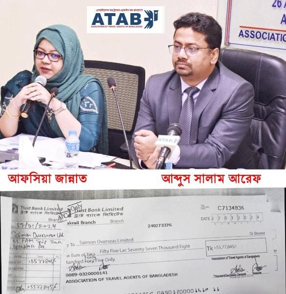 এছাড়াও জাপান ফেম ট্রিপের ৫৫,৭৭,০০০/০০ পঞ্চান্ন লক্ষ সাতান্ন হাজার টাকা পতিত আটাব কমিটির মহাসচিব আফসিয়া জান্নাত সালেহ এর নিজস্ব প্রতিষ্ঠান সায়মন ওভারসীজ লিমিটেডের নামে চেক ইস্যু করে আত্বসাত করেছে বলে প্রমাণ পাওয়া গেছে। আটাব অনলাইনের প্রায় ১ কোটি ৫০ লক্ষ টাকা দূর্নিতিবাজ সভাপতি আব্দুস সালাম আরেফ ও মহাসচিব আফসিয়া জান্নাত সালেহ আত্মসাৎ করেছে। উক্ত অভিযোগগুলো প্রমানিত হওয়ায় আটাব কমিটি বাতিল করে বানিজ্য মন্ত্রণালয়ের উপসচিব জনাব মোতাকাব্বির আহমেদকে প্রশাসক নিয়োগ করেছে বানিজ্য মন্ত্রণালয়।